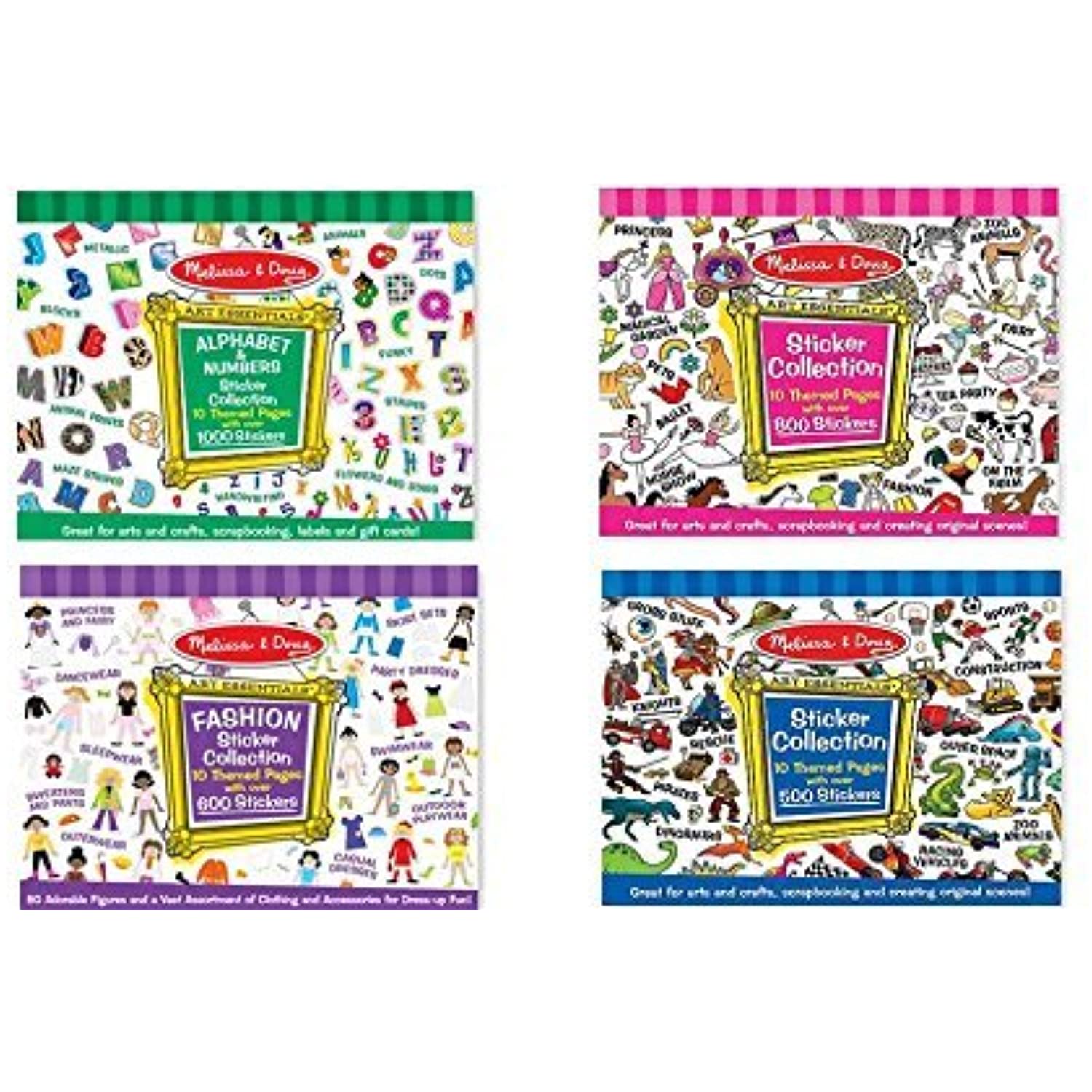 Melissa and Doug Sticker Collections 4 pack bundle (Pink, Blue, Fashion and Alphabets & Numbers)