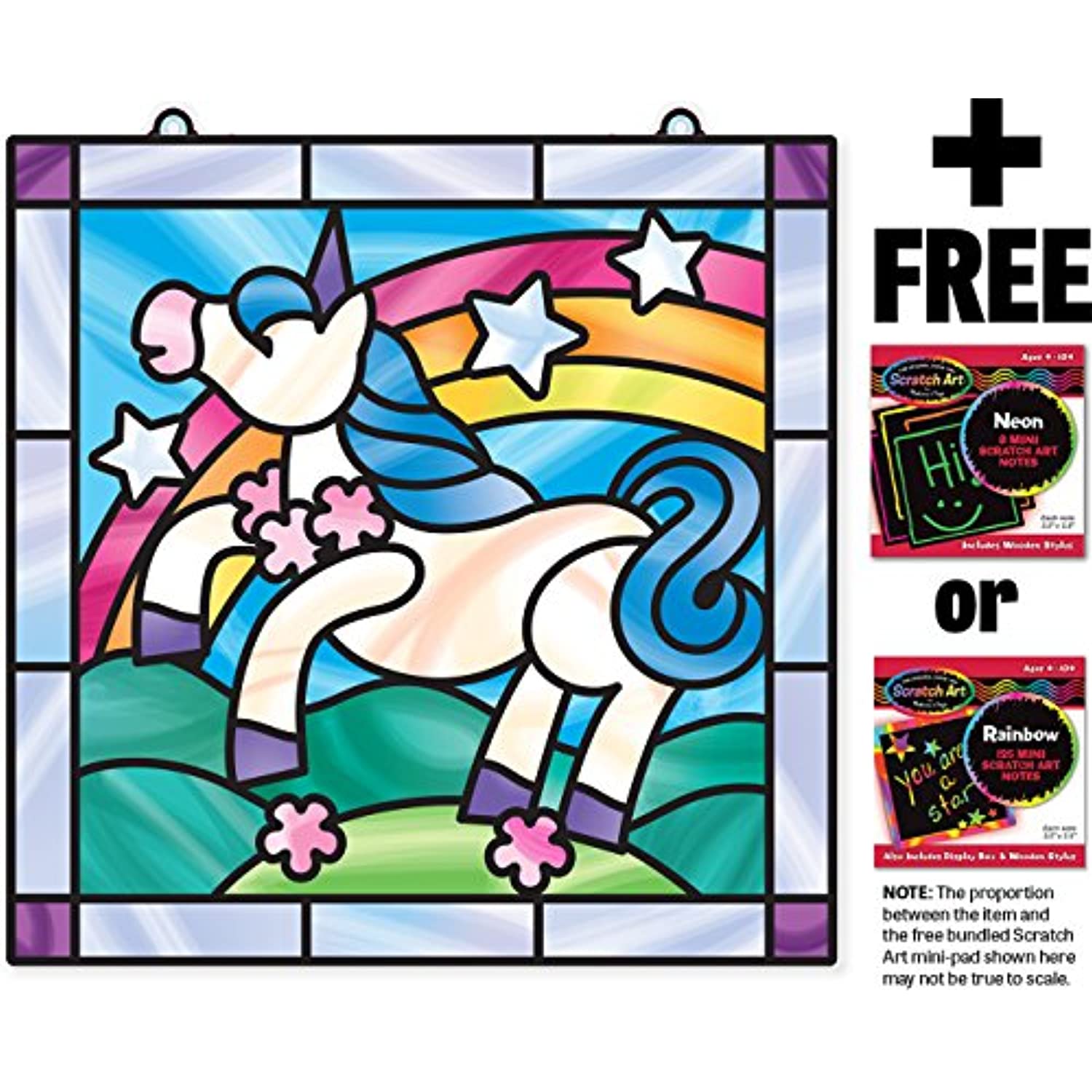Melissa & Doug Unicorn: Stained Glass Made Easy Series & 1 Scratch Art Mini-Pad Bundle (09299)