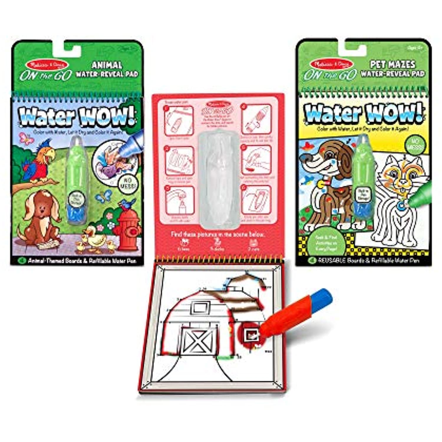 - NO-MESS ACTIVITY BOOK 3-PACK: The Melissa & Doug On the Go Water Wow! Activity Pad 3-Pack features themed watercolor books (Animals, Farm, Pet Mazes) that each include 4 reusable pages and come with a refillable water pen.