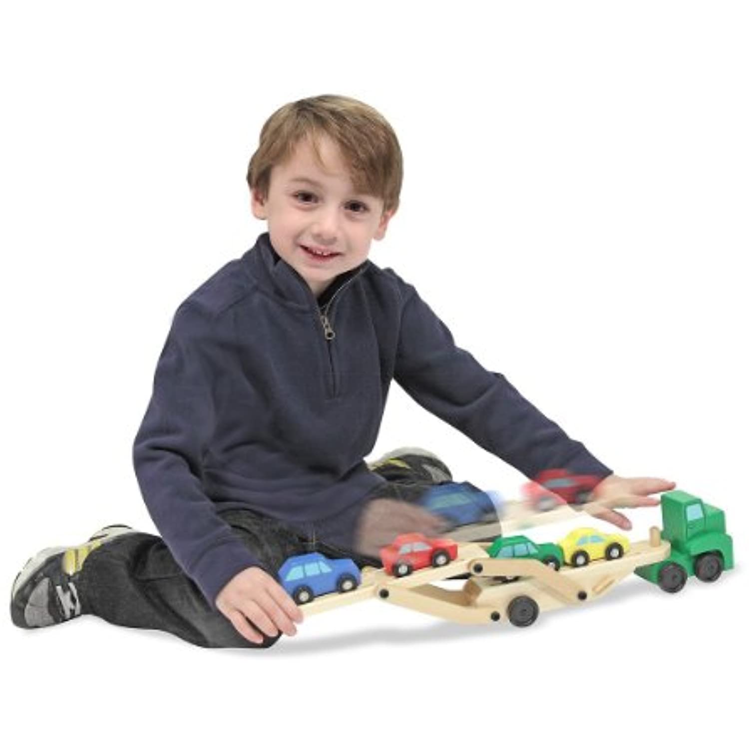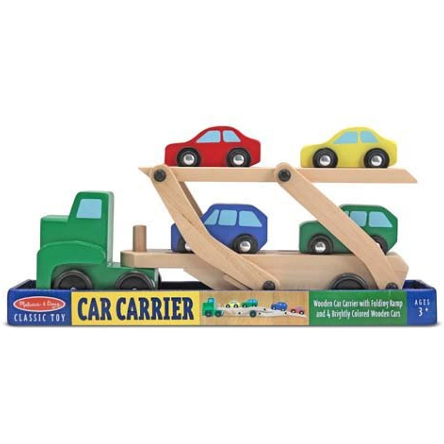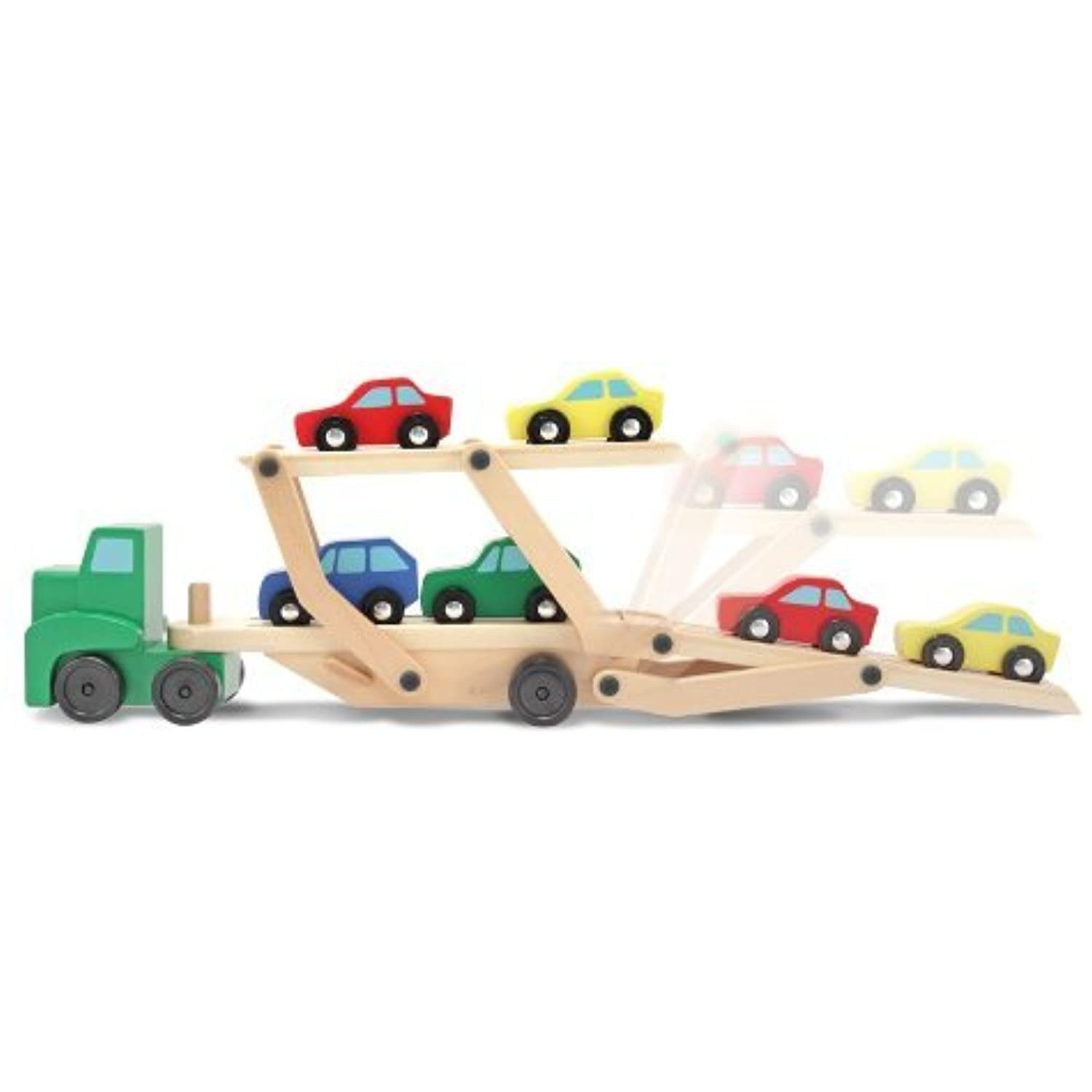 Melissa & Doug creates yet another great toy for your beloved little one. Load, raise, and haul four new vehicles along an imaginary highway with this Car Carrier from Melissa & Doug. This quality, all-wood truck makes it easy to load four brightly colored cars onto a long ramp that folds into a two-level carrier, allowing your child to deliver the vehicles wherever they may need to go!