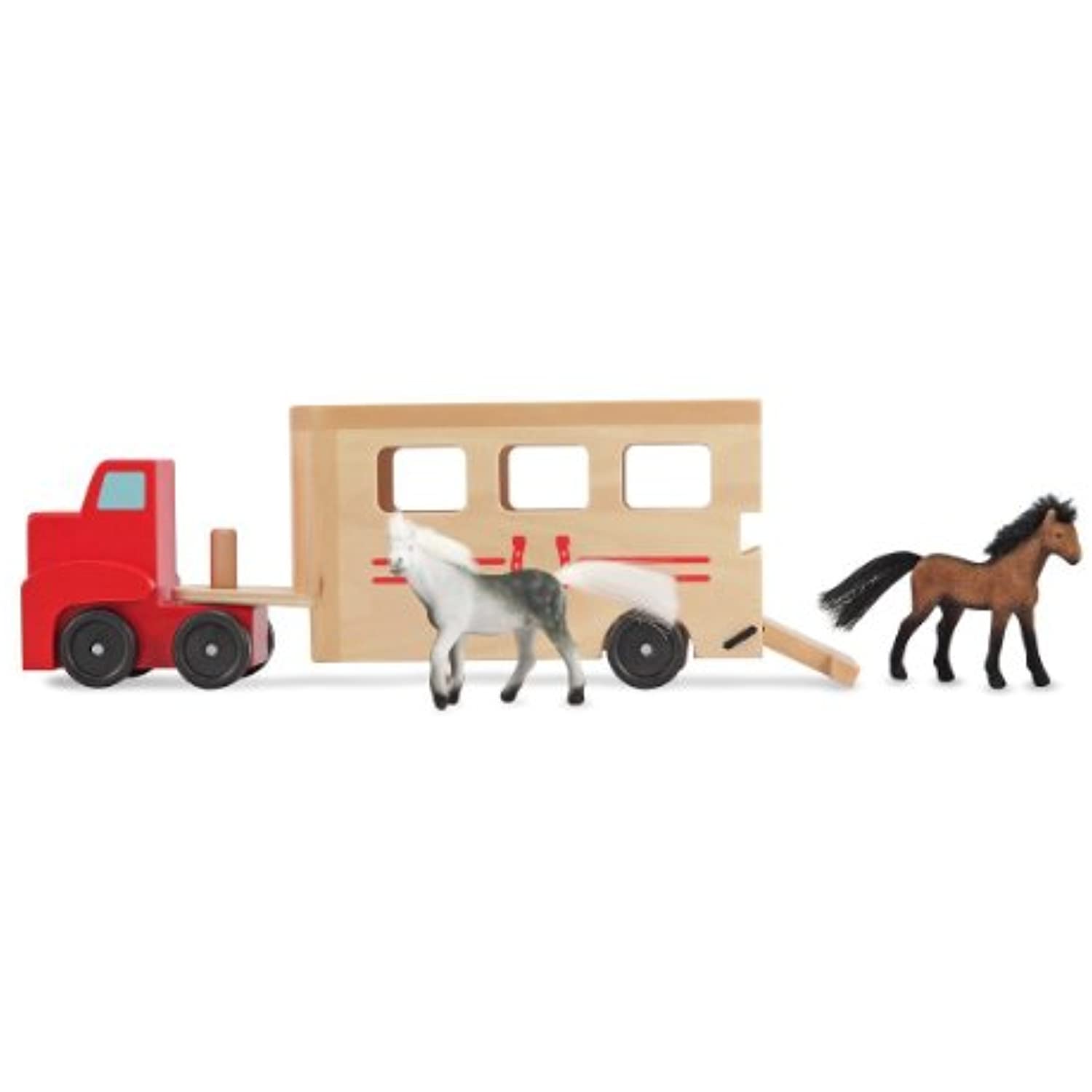 - Wooden big rig comes with a pull-down ramp so that the horses can be loaded and unloaded with ease.