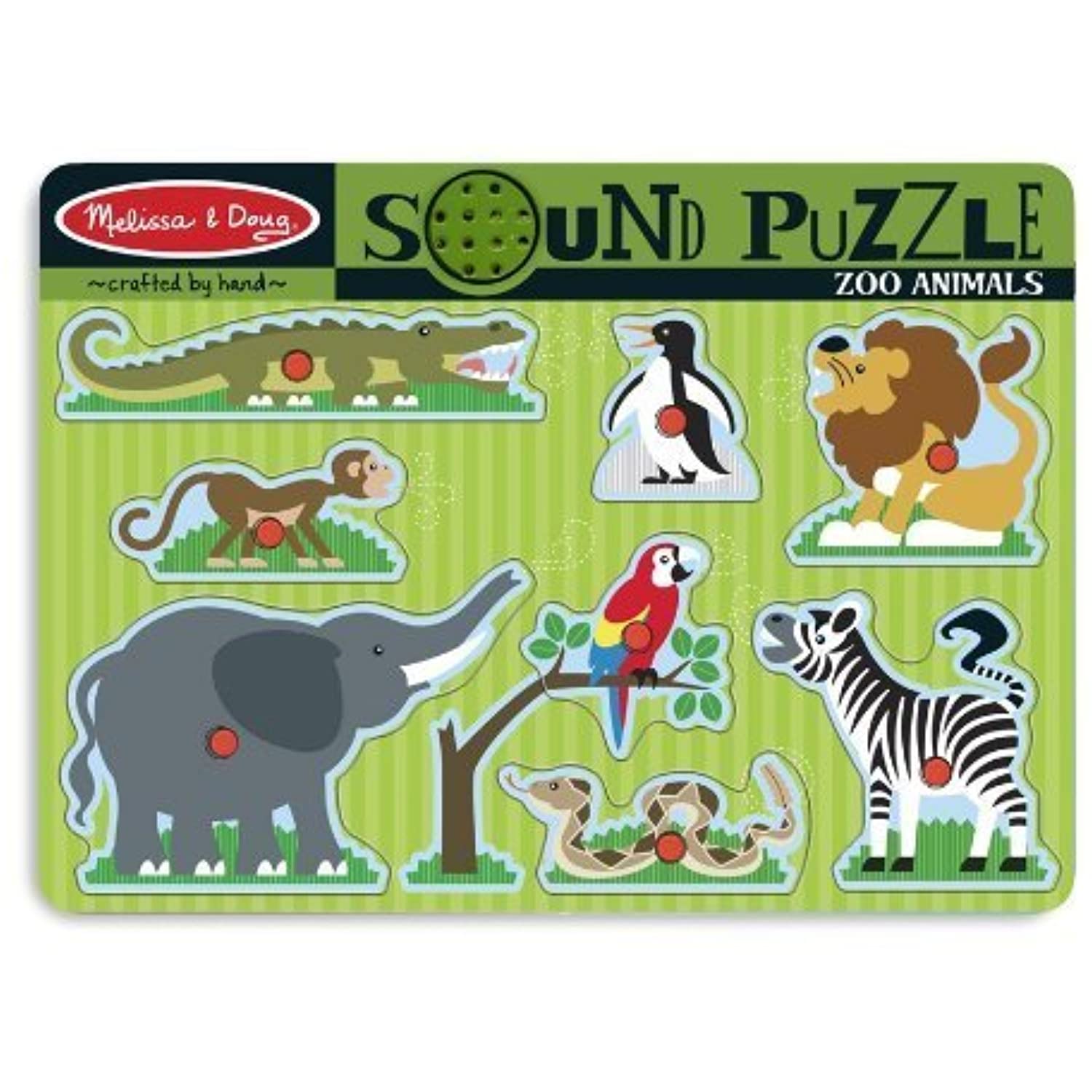 Melissa & Doug creates yet another great toy for your beloved little one. This toy for early childhood is a wood puzzle features a bright and colorful graphic design of a related theme. When a puzzle piece is placed on the board, a complemental realistic sound associated to the piece will be played. This can help develop your loved little one's hand-eye coordination and association skills.