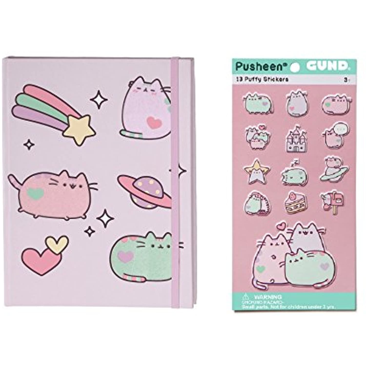 Pusheen GUND Purple Pastel Notebook Journal Bundle with Pastel Sticker Sheet