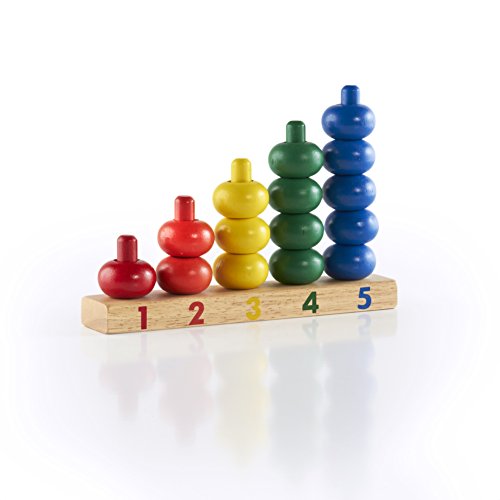 - Set includes 15 pieces and peg base Sort and stack the correct number and color rings to each corresponding peg