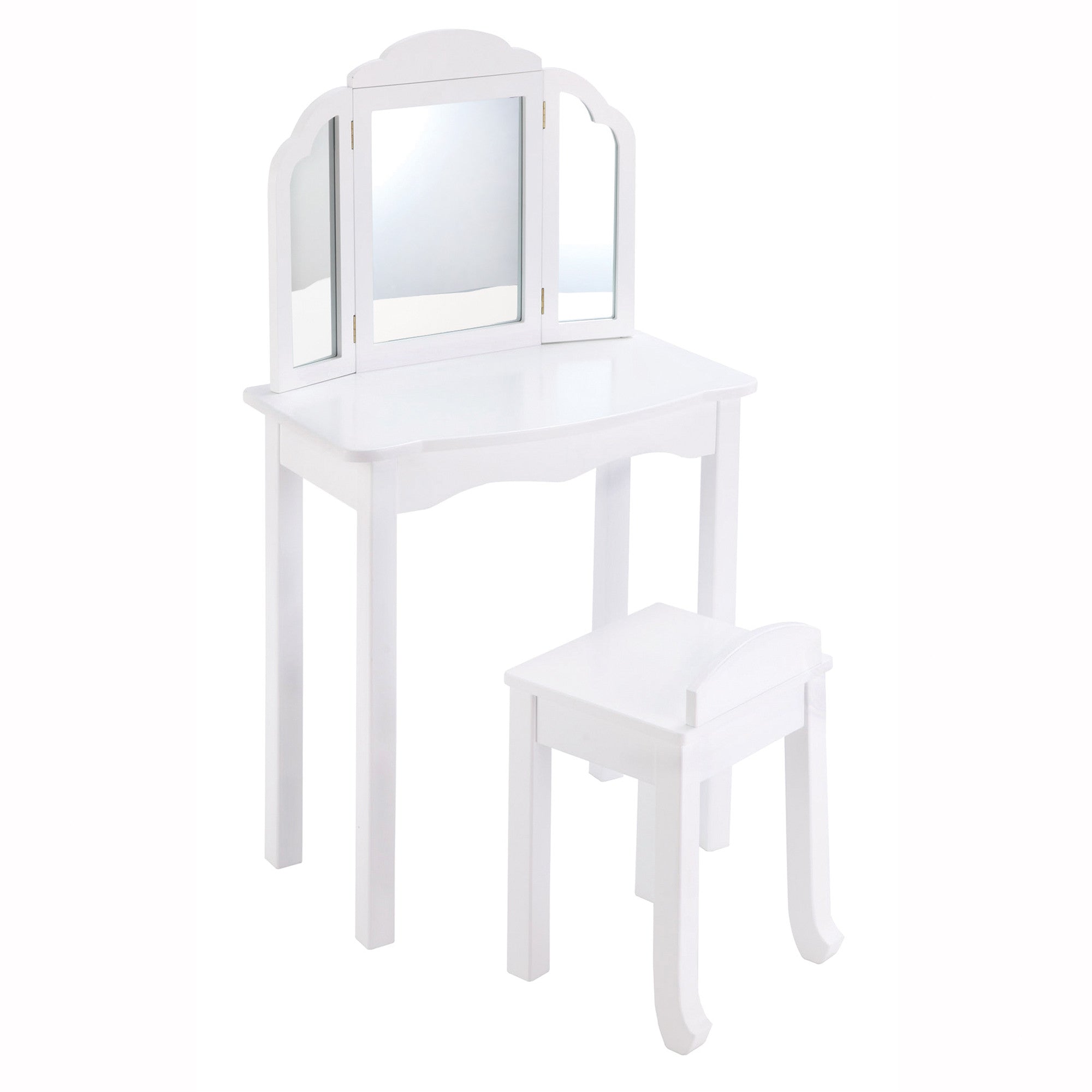 - Two-piece vanity and stool set features durable construction with an attractive, child-safe design