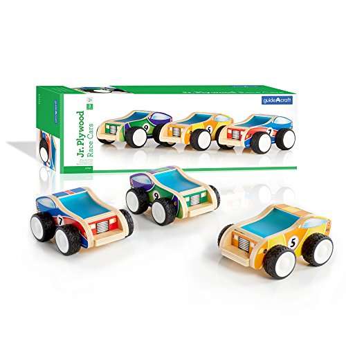 Get the fun rolling with our hand-held, Jr. Plywood Vehicle sets! The Race Cars set includes an indigo and green #9 car, a red and blue #7 car, and a yellow and orange #5 car. Features sturdy plywood construction and frosted acrylic windows. Wide, soft plastic treads provide great traction. Detailed artwork enhances each unique vehicle.Features: Includes an indigo and green #9 car, a red and blue #7 car, and a yellow and orange #5 car Sturdy plywood construction and frosted acrylic windows Wide, soft plastic treads provide great traction Detailed artwork enhances each unique vehicle Age: 2+ Specifications: Individual vehicle approx: 2.5-3.5" H x 3.75" W x 5" D