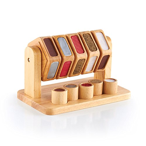 Take your tactile senses for a spin! five pentagonal shapes rotate on a stationary rod, displaying a different tactile material on each side. Match or mix the panels from left to right, or play matching games with additional, corresponding tactile tiles. Strengthens tactile perception, concentration, and cooperation. Ages 3+. 9.5"W x 6"D x 5.5"H