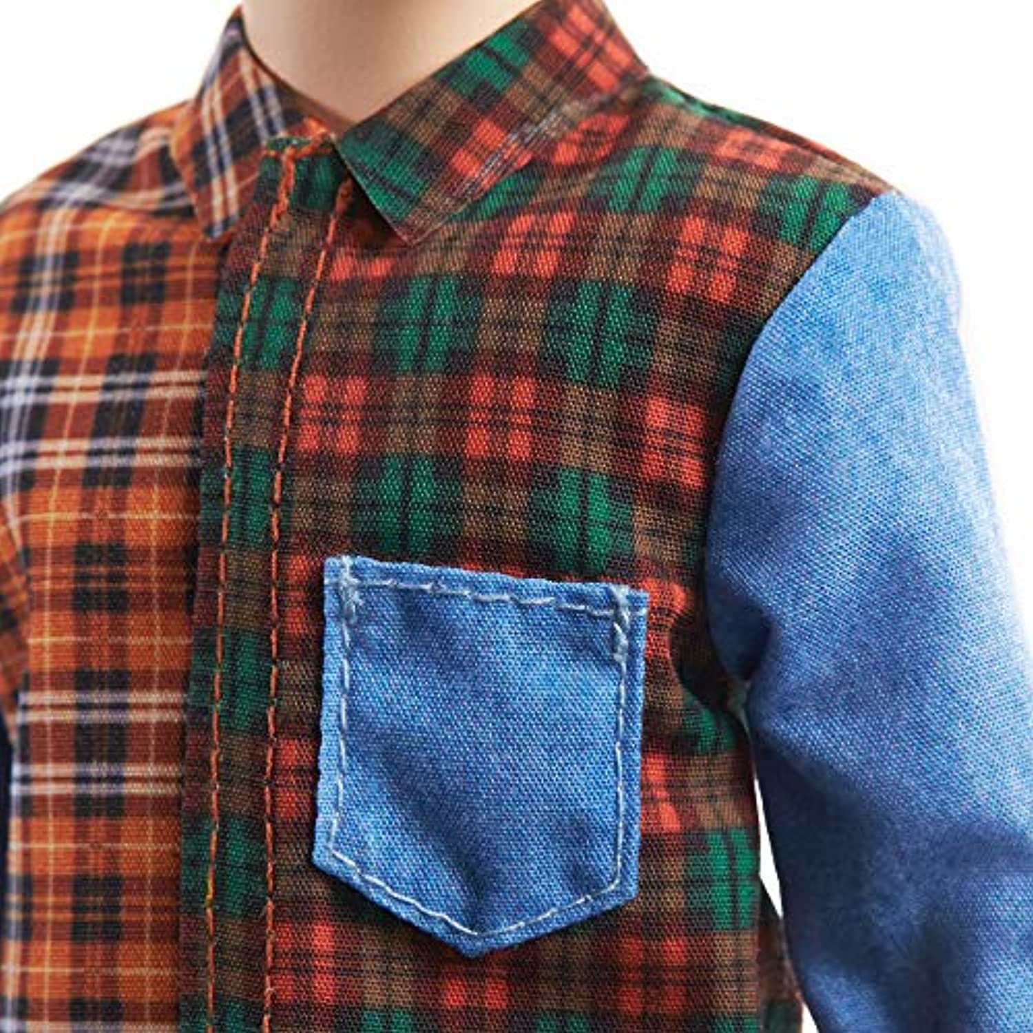Barbie Ken Fashionistas Doll #154 with Sculpted Purple Hair Wearing a Color-Blocked Plaid Shirt, Black Denim Pants & Boots, Toy for Kids 3 to 8 Years Old