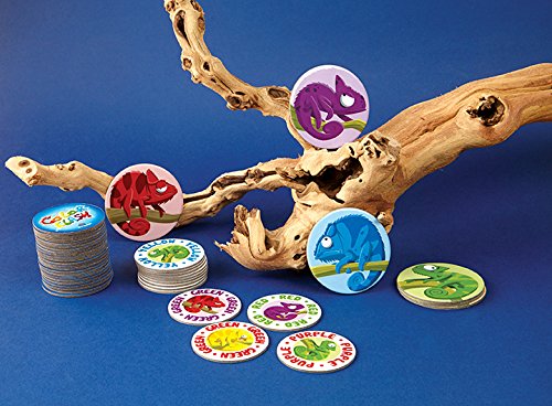 Race to find the correct tile as the colors clash in your mind! Each of the 36 Color Clash tiles has 3 Attributes: A Picture of different color chameleons, a Word that refers to a specific color, and a Color that the Word is written in Your mind will be challenged to quickly recognize the color a word is written in when it spells another color, also known as the "Stroop Effect" Eight game variations are included in the rule book to mix up the fun!