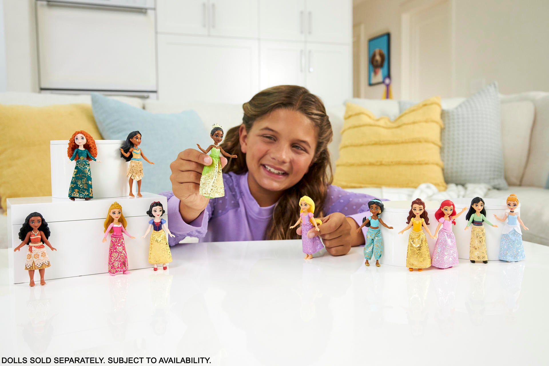 Meet the Disney Princess dolls from Disney's most beloved movies, in a charming scale (3.5 inches) with movable joints! Each posable small doll appears in her signature fashion, featuring a removable soft skirt or pants with metallic details. Fans can find their favorite heroine or collect them all for the ultimate adventure! Each sold separately, subject to availability. Dolls cannot stand alone. Colors and decorations may vary.