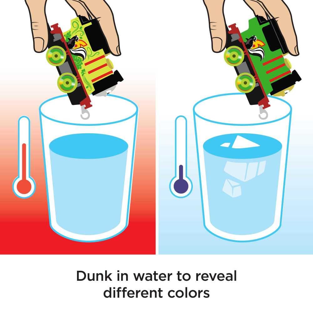 Young conductors can recreate their favorite railway stories from the Thomas & Friends: All Engines Go! series with these die-cast metal push-along toy train engines with awesome color-changing action! Kids can collect their favorite characters from the series and watch as the engines change color when placed in water. Its like having 2 engines in 1! Reveal hidden decorations on each engine by changing the water temperature from warm to icy cold (and back again). Each engine sold separately and subject to availability.