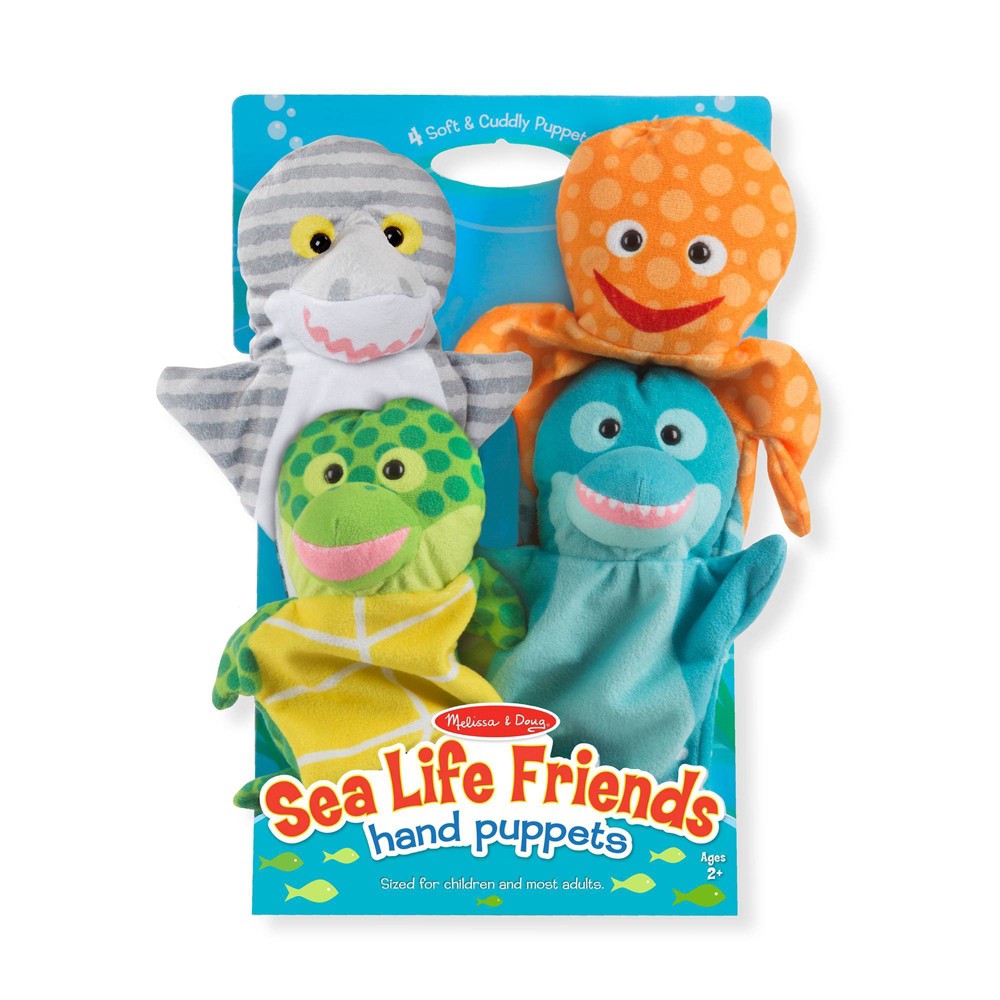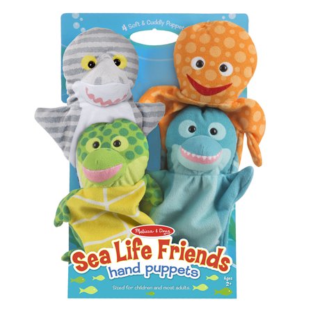 Four soft hand-puppets in a sea life themeGreat for motor skills, hand-eye coordination, communication skills, self-confidence, and parent-child bondingWashable fabric