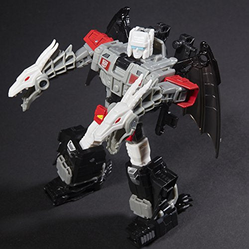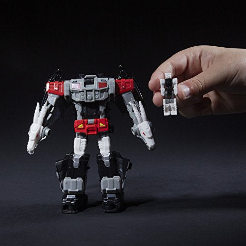Transformers Generations Titans Return Deluxe Class figures are 5.5-inch scale figures that come with a Titan Master figure. The Titan Master figure becomes the head of the Deluxe Class figure. It also works with Deluxe Class, Voyager Class, and Leader Class Titans Return figures (each sold separately). In Titans Return, the Autobots and Decepticons unite with Titan Masters, small bots that carry a power boost. Titan Masters are key to controlling an ancient race of warriors the size of cities: the Titans. Character Specs: Autobot Twinferno: fire-slinging warrior Titan Master Daburu: Energon jolt to peak performance Unite and power up for battle. Figure Specs: Deluxe Class Autobot Twinferno Modes: robot, 2-headed dragon Converts in 16 Steps Works with other Titan Master figures (each sold separately) 2 accessories Comes with a character card with tech specs Titan Master Daburu Modes: robot, head Converts in 1 step Transformers and all related characters are trademarks of Hasbro.