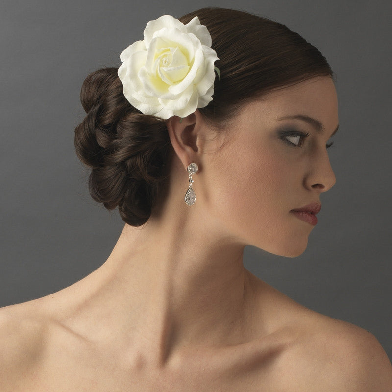 This beautiful fabric rose detailed clip is feminine and elegant. Can be added to your bridal updo or simply to embellish your gown!