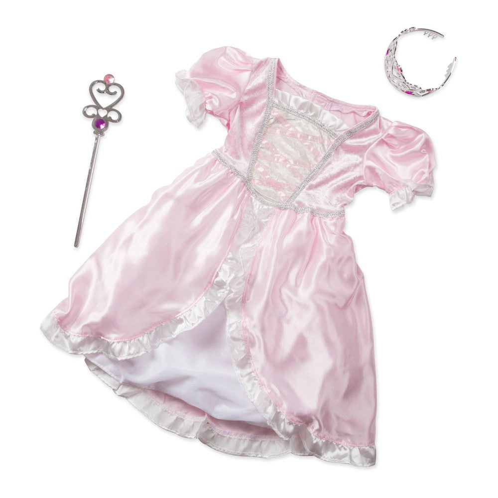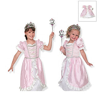 Your little princess will make a grand entrance to the ball, or anywhere in her "kingdom", in this pink and cream satin and tulle gown.