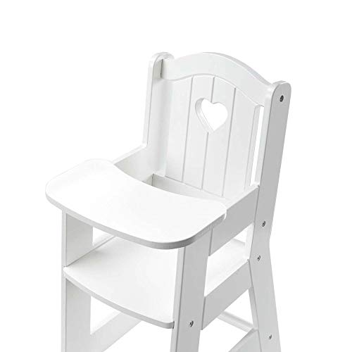 • White wooden play high chair for dolls and stuffed animals up to 20 inches tall