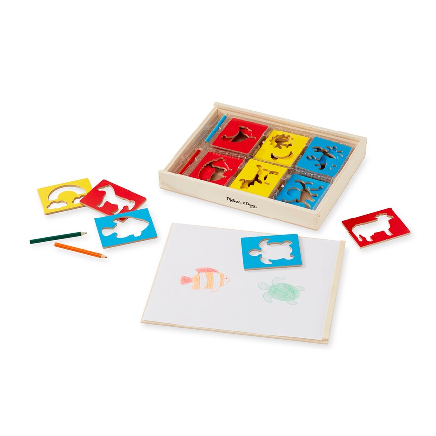 Children will have endless fun expressing their creativity and making up stories with this expansive set of wooden stencils. The sturdy stencils come in three themed groups: farm, home, and ocean; a rainbow of colored pencils provides plenty of ways to personalize. A great way to promote fine motor skills, storytelling skills, and more. For more than 30 years, Melissa and Doug has created beautifully designed imagination- and creativity-sparking products that NBC News called “the gold standard in early childhood play.” We design every toy to the highest quality standards, and to nurture minds and hearts. If your child is not inspired, give us a call and we'll make it right. Our phone number is on every product! Gender: unisex.