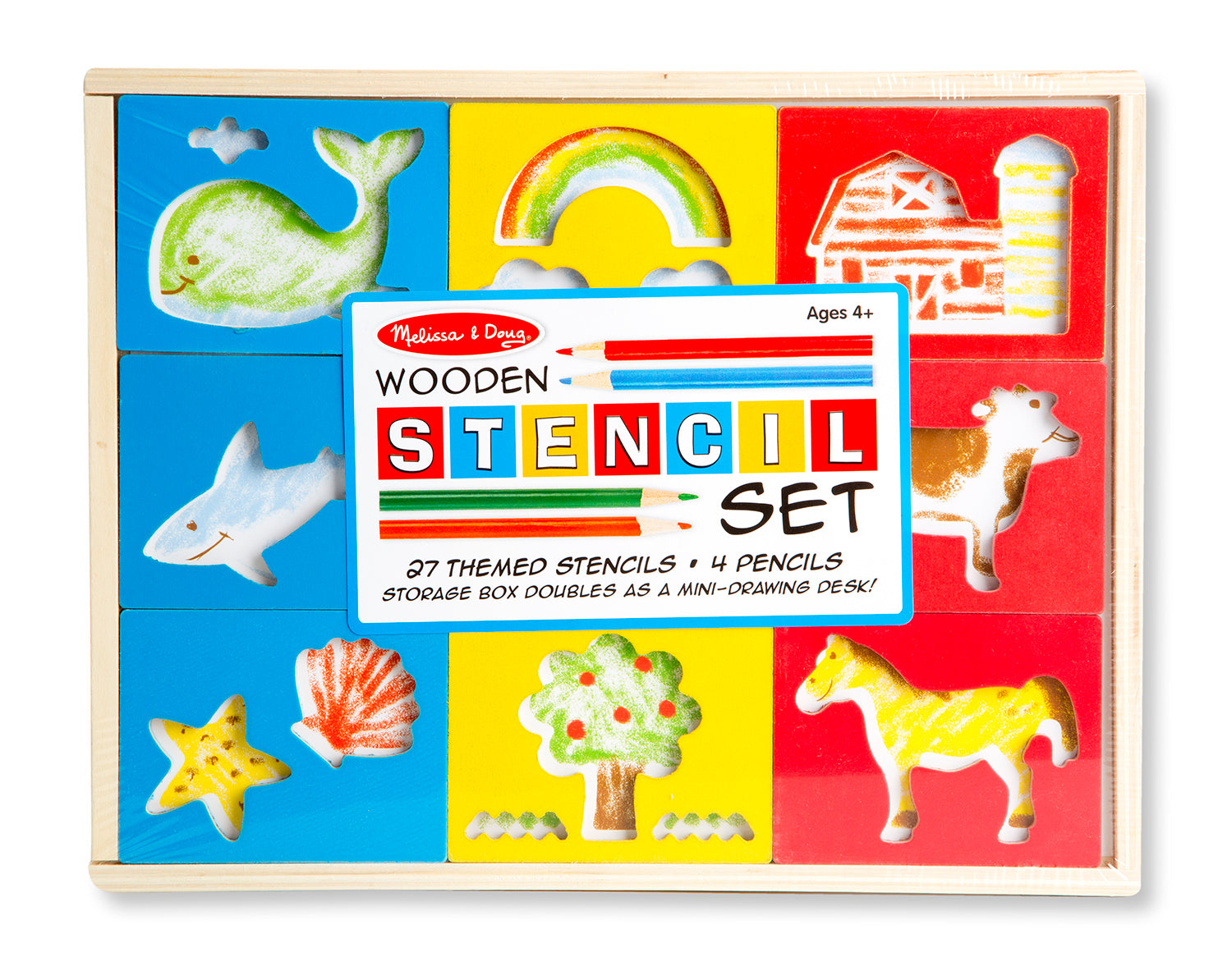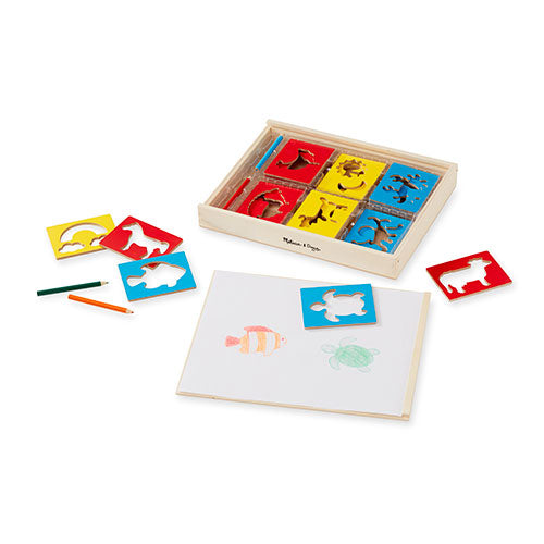 Melissa & Doug Wooden Stencil Set With 27 Themed Stencils and 4 Pencils