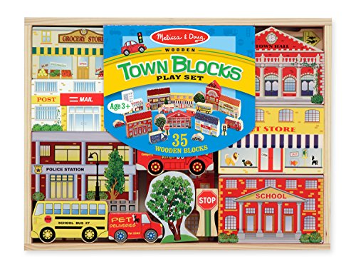 Melissa & Doug Wooden Town Blocks Play Set With Storage Tray (35 pcs)