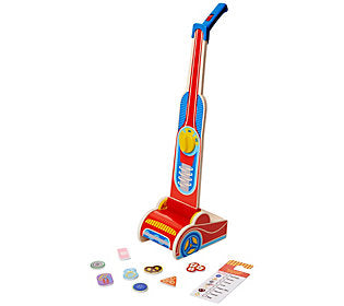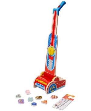 Encourage an appreciation for tidying up with Melissa & Doug's kid-sized wooden vacuum. This cool wooden vacuum cleaner comes with eight wooden pieces that disappear into the base, only to be scattered out again when the lid is lifted.