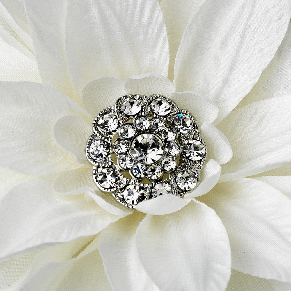 Rhodium Dahlia Hair Clip 517 or Clip Brooch with Petals & Sparkling