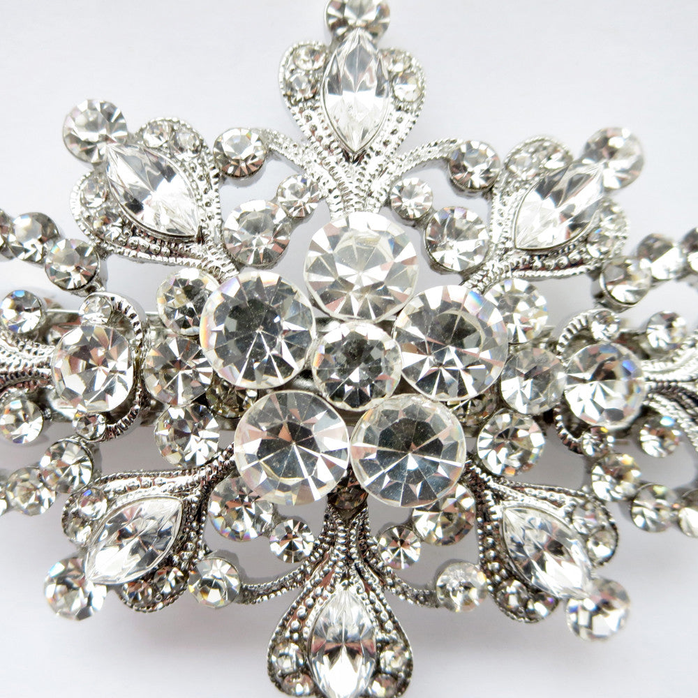 Add a touch of vintage elegance to your wedding day ensemble with this beautiful barrette features dazzling multi cut rhinestones encrusted in rhodium plating that glisten and shine in the light. This elegant and classy hairpiece is the perfect addition to any wedding hairstyle.