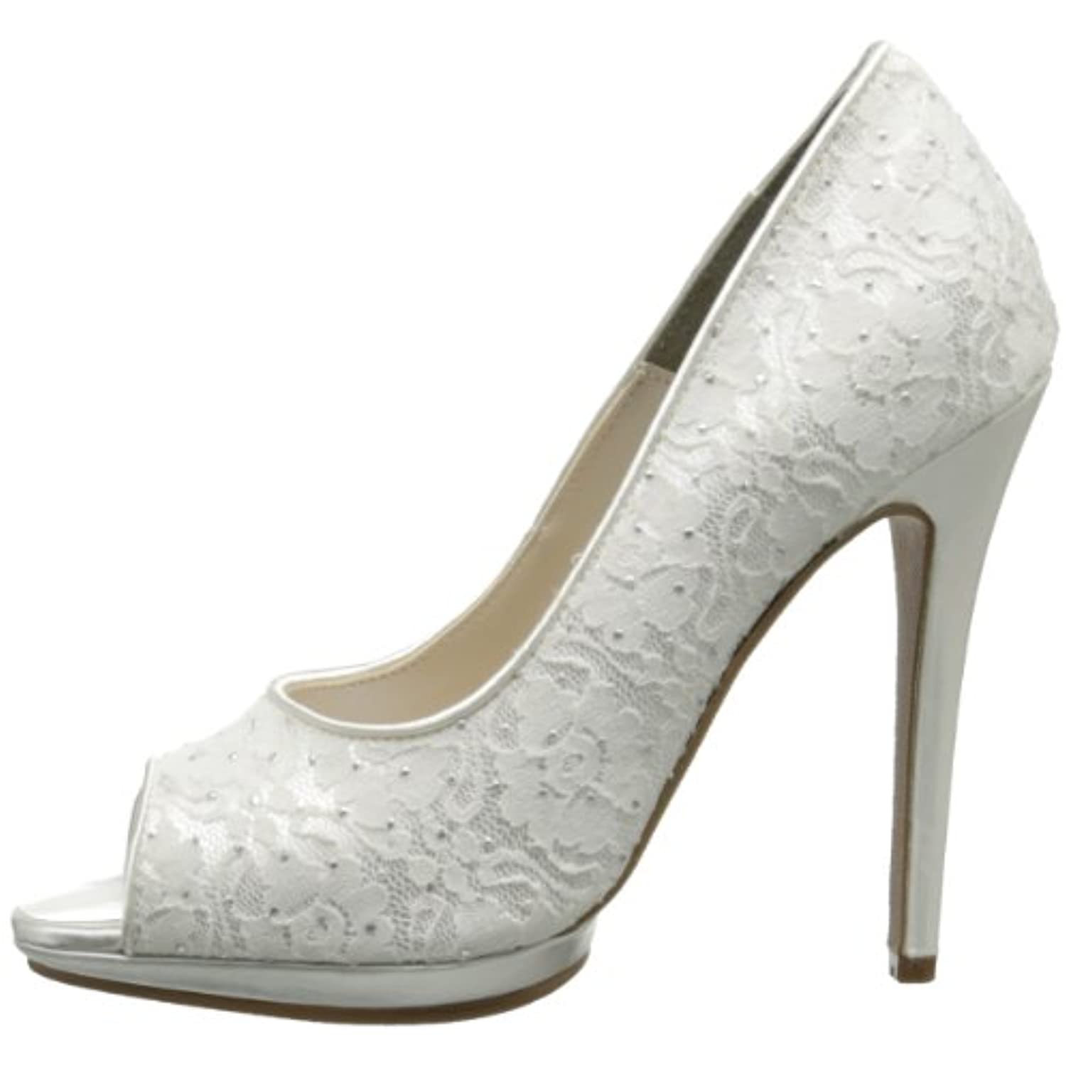 Touch Ups Women's Classy Platform Pump,White Satin/Lace,10.5 M US