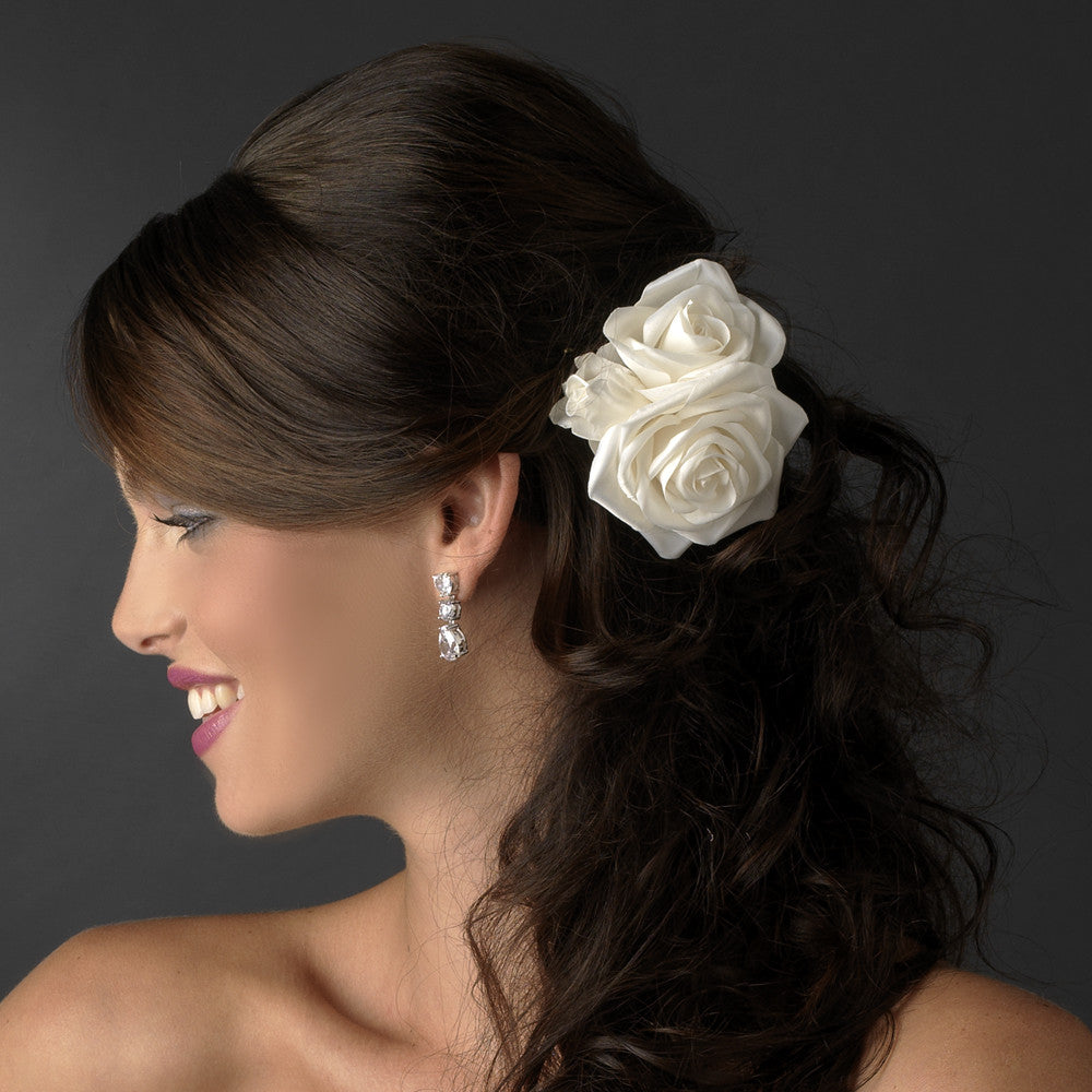 Tulip-trio hair clip. A lovely hair clip in ivory that is perfect for bridal parties wearing any gradient of colors. A lovely accent for an updo or hair left down.