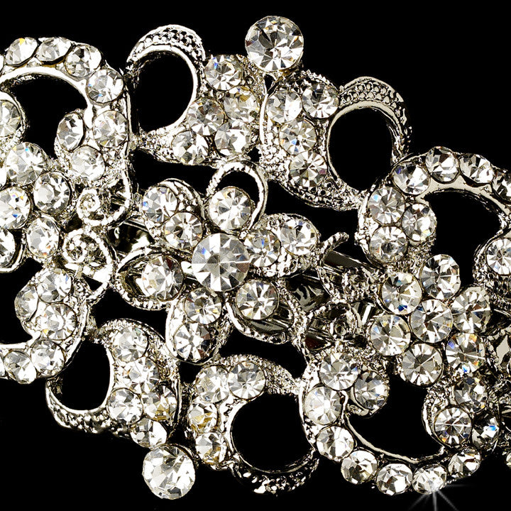 Vintage Rhodium Silver Rhinestone Bridal Hair Barrette 2030