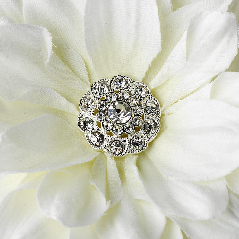 This gorgeous Jeweled Royal Dalia Flower has been carefully handcrafted down to the finest detail. The hue of light yellow on the inner portion of the flower gives this hair accessory a natural appearance, aside from the gorgeous couture rhinestone center accent. This piece is exquisite, and ultimately perfect for any Bridal or Formal Occasion Hair Style. The elegant diamond white color is not only perfect for a spring or summer season wedding, but also for winter because of the classic snow color. The back of this Gerber flower has an alligator clip, to provide a secure and fit snug into the hair with comfort.
