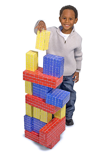 Young construction workers and architects will spend hours with these lightweight yet durable cardboard building blocks. This 40-piece set features three sizes of "bricks" for constructive imaginative play. Made of premium, extra-thick cardboard for strength, they are easy to assemble and feature a wipe-clean surface. The red blocks hold up to 150 lbs!