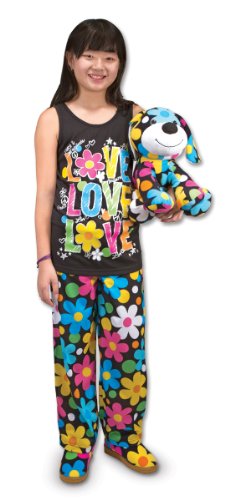 A colorful daisy print pops against the black background of Bloomer Dog's super-soft coat. Floppy ears and color-pop print make him top dog in the cuteness department, but it's his squishy, extra-huggable fill that make this pup a kid's best friend. And like all Melissa & Doug Beeposh toys, Bloomer is machine washable.