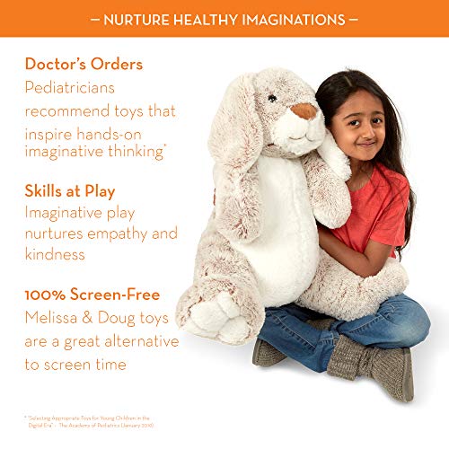- ADORABLE OVERSIZED PLUSH BUNNY: The Melissa & Doug Jumbo Burrow Bunny Rabbit Stuffed Animal is an adorable giant plush toy featuring a sweet face, long ears, and big, floppy feet.