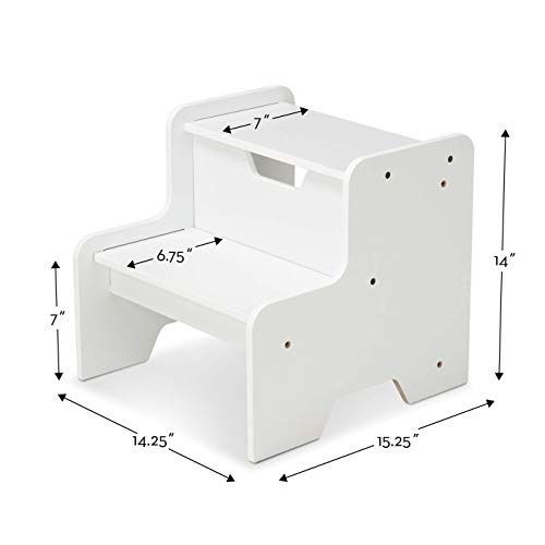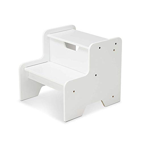 Give kids a leg up with this sturdy wooden two-step step stool! Available in natural, white, and espresso finish to fit with any home décor, this stool is great for helping kids up to 100 pounds reach books and toys in the playroom, climb into bed at night, brush their teeth and wash their hands at the bathroom sink, or help out in the kitchen at mealtimes! Easy to assemble with a Philips head screwdriver, not included.