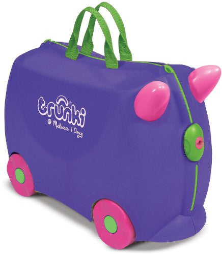 Melissa & Doug Trunki Iris (Purple). Packing Iris for a vacation or overnight visit adds excitement to any travel adventure. Your child will love having a suitcase with a "built-in" seat! Designed with family-friendly features for travel, Iris is perfect for toy storage at home, too!