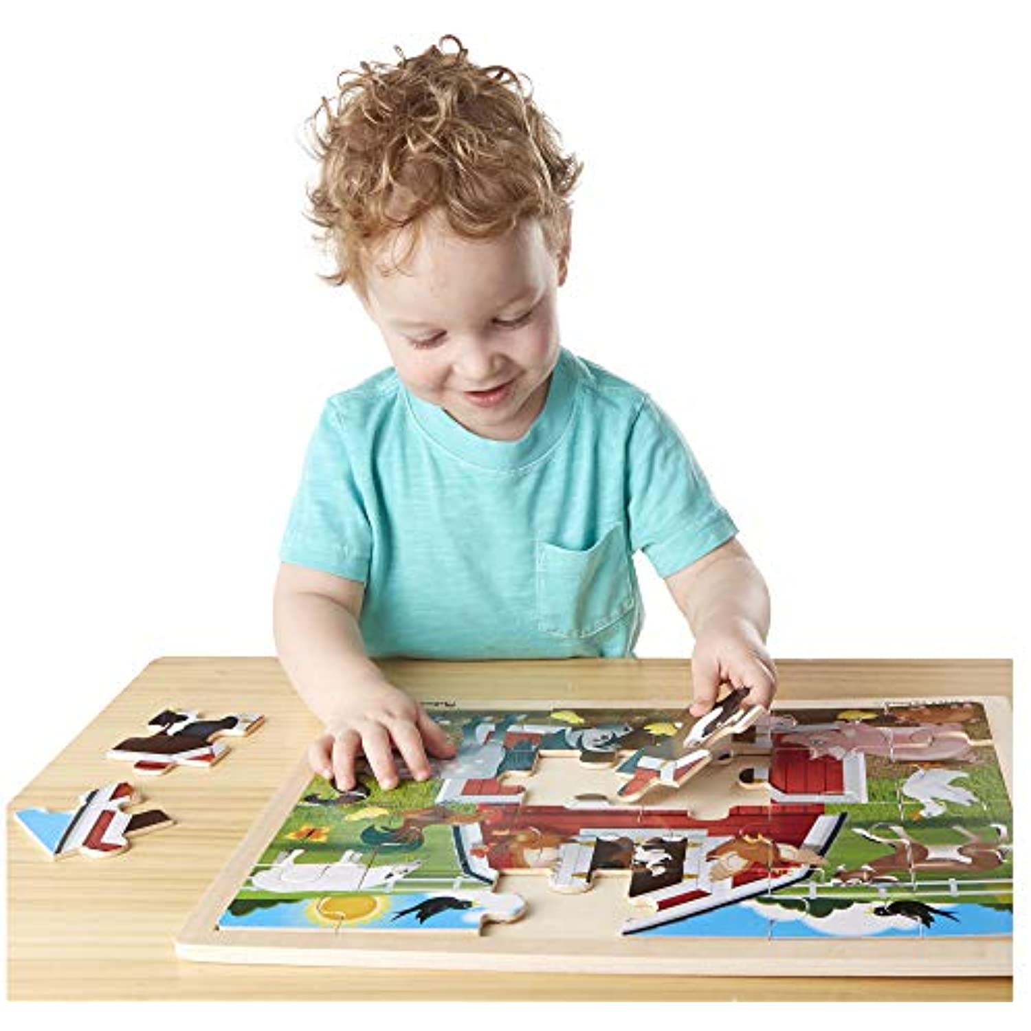 Melissa & Doug classic wooden jigsaw puzzles are built to last through years of play. The sturdy wooden pieces are just right for young children: they are easy to grasp, lift, and connect, and they fit together to create stunning scenes. This assortment of three puzzles for kids three and older includes animal and vehicle favorites barnyard, diggers at work, and pets. These colorful kids’ puzzles come packaged in sturdy, wooden 15.75-Inch by 11.75-Inch trays for puzzle building and easy storage.