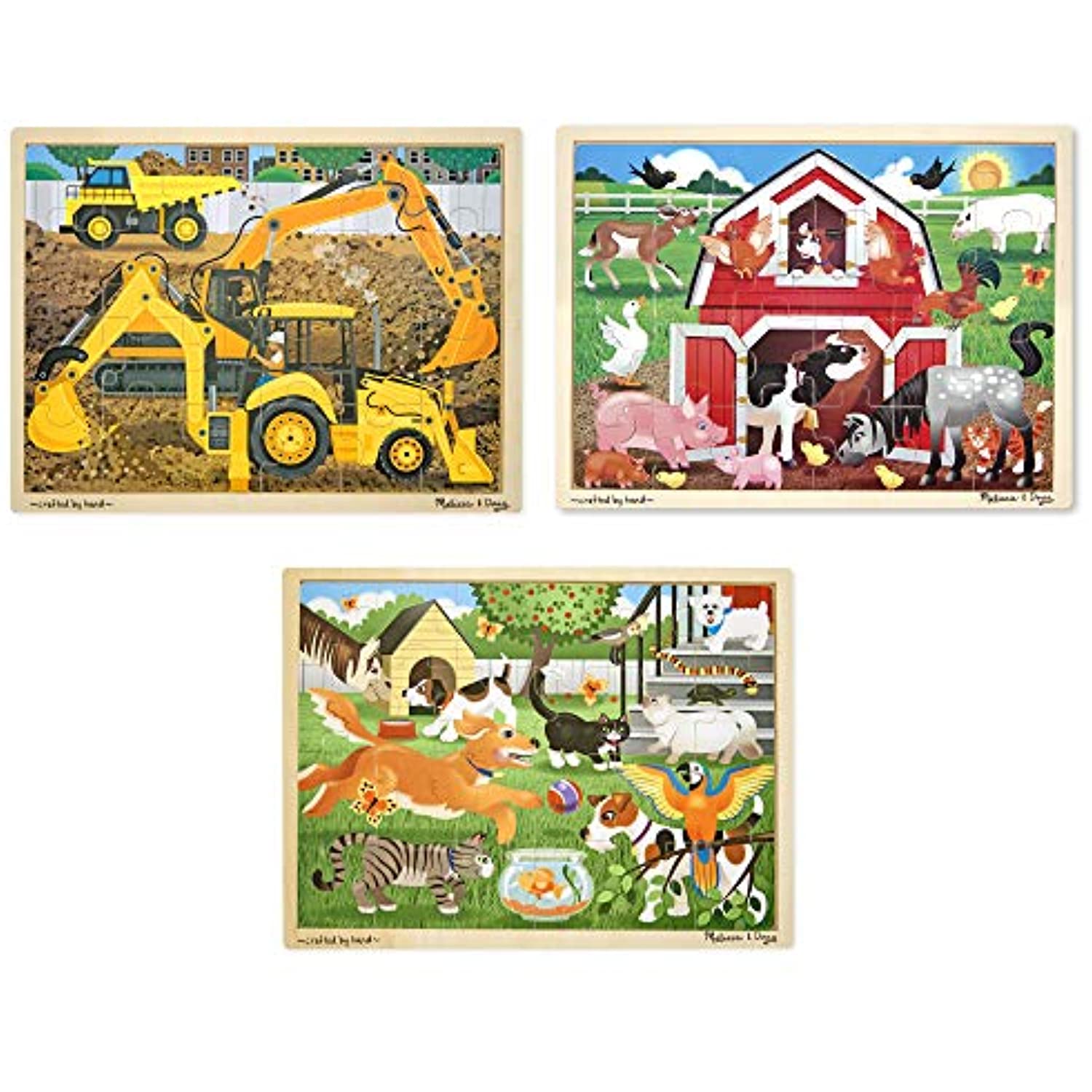 Melissa & Doug Wooden Jigsaw Puzzle arm, Construction, Pets Puzzle (24 Piece)