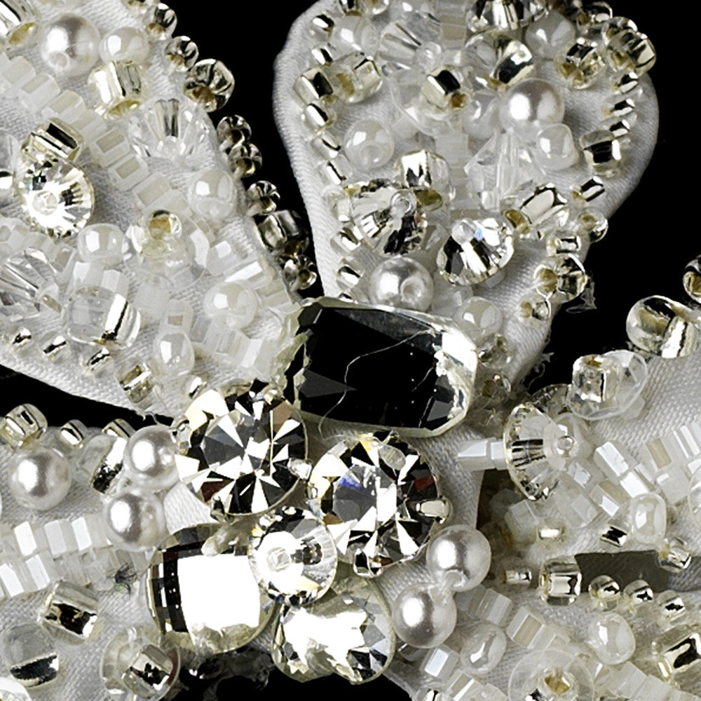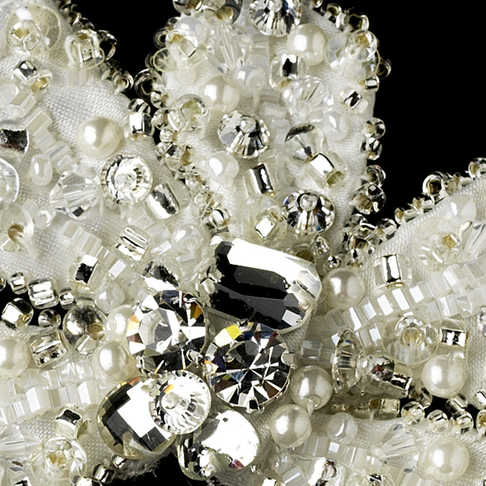 This beautiful decorative floral clip embellishment detailed with fabric lining, clear beading and Swarvoski crystals is stunning. Can be added to any bridal ensemble in need of sparkle detailing. This piece truly shines!