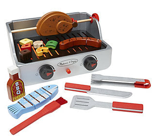 Kids can have a pretend cookout whenever they want with this charming Bbq grill play set by Melissa and Doug.