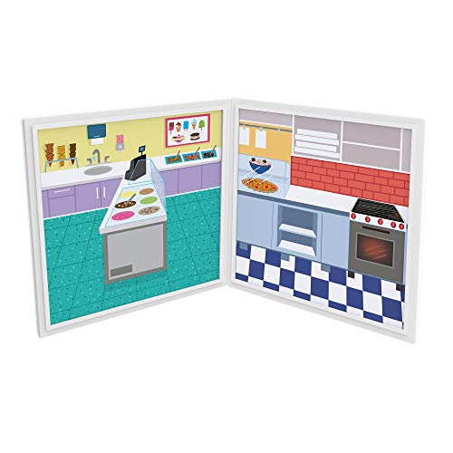 Feed restaurant dreams and hungry imaginations with the Magnetivity™ Magnetic Building Play Set Pizza & Ice Cream Shop! Magnetivity™ encourages kids to experiment, explore, and imagine by inspiring them to design and build their own unique worlds! The 13 double-sided panels with artwork on both sides magnetically attach in different combinations, so kids can build new designs for their own restaurant and combination ice cream truck and pizza delivery van every time they play. The 87 included magnetic accessories stick to the panels and to the two magnetic wooden play figures with stands, inspiring open-ended, hands-on exploration and play! All Magnetivity™ panels are compatible. For more than 30 years, Melissa & Doug has created beautifully designed imagination- and creativity-sparking products that NBC News called “the gold standard in early childhood play.” Today, Melissa & Doug is proudly partnering with the American Academy of Pediatrics to foster early brain development and help children build important life skills through play.
