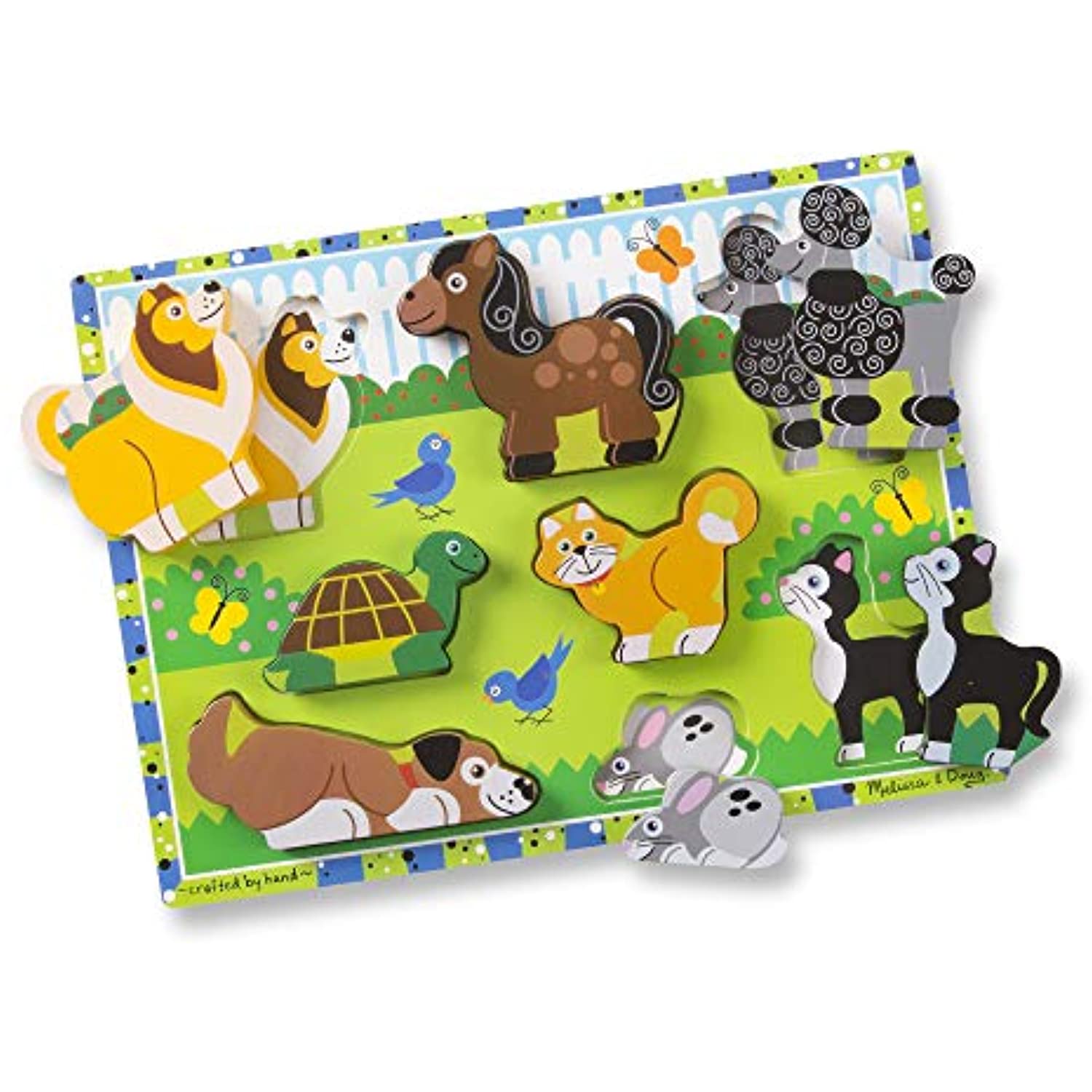 Melissa & Doug Wooden Chunky Puzzle Farm/Pet/Safari/Shapes Puzzle (8 Piece)