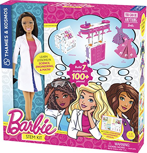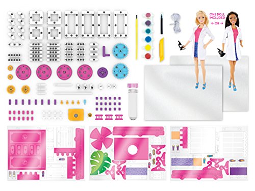 Learn and play with the Barbie STEM Kit! Each kit comes with a 32-page, full-color storybook manual. Learn important engineering lessons as you build 7 models and conduct more than 10 science and art experiments. Models include a spinning dress rack, jewelry holder, hammock, washing machine, and rotating dress design platform, and are compatible with the Barbie Dream House. Create your own Barbie dresses using origami, chromatography, leaf-prints, and optical illusion patterns. 120+ pieces. Includes Barbie scientist doll. 12x12x2.5 in.; 1.5 lbs. Full-time Customer Service and Tech Support available. One-year manufacturer's limited warranty.