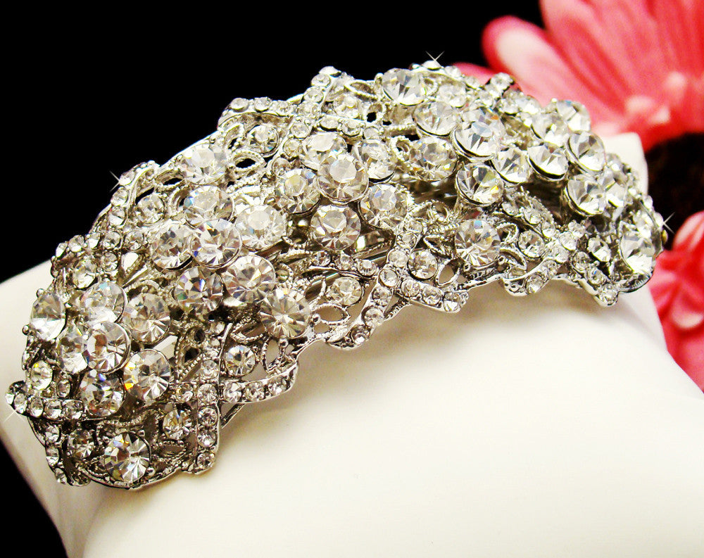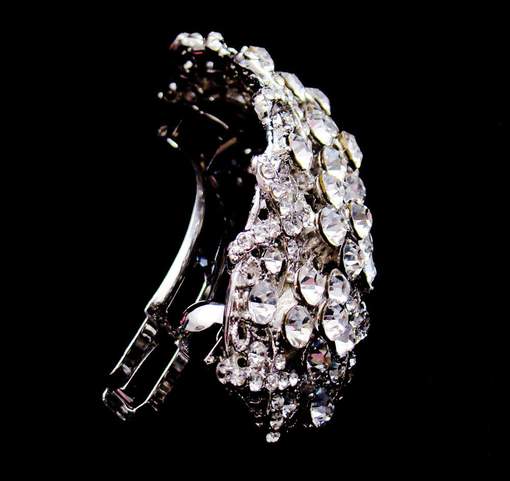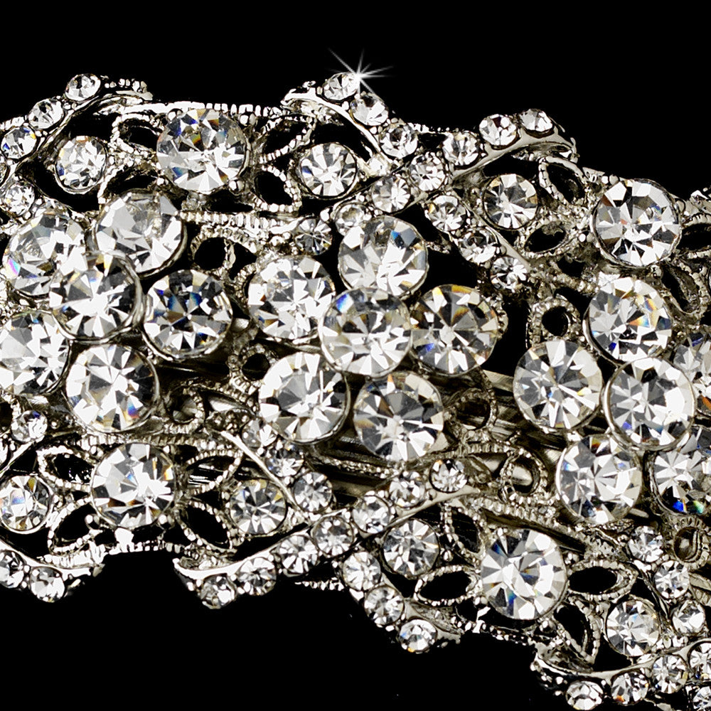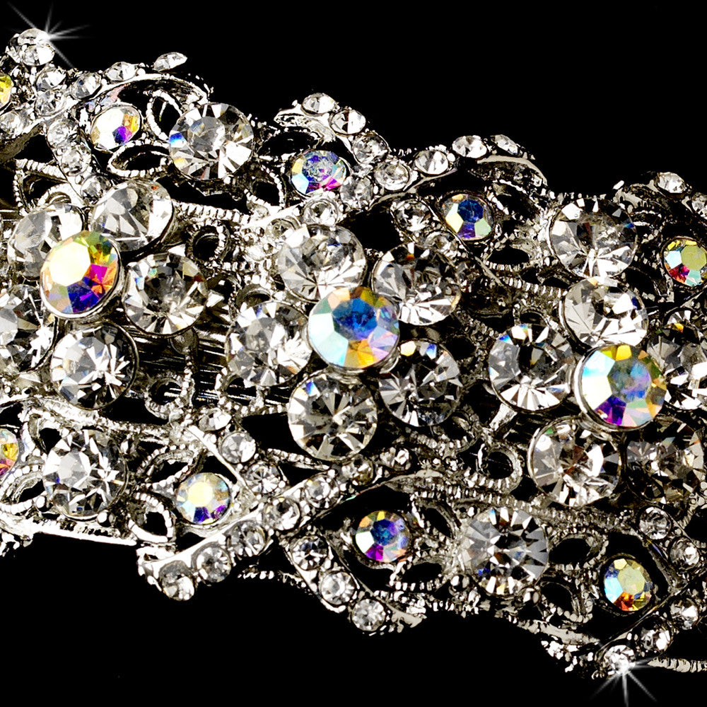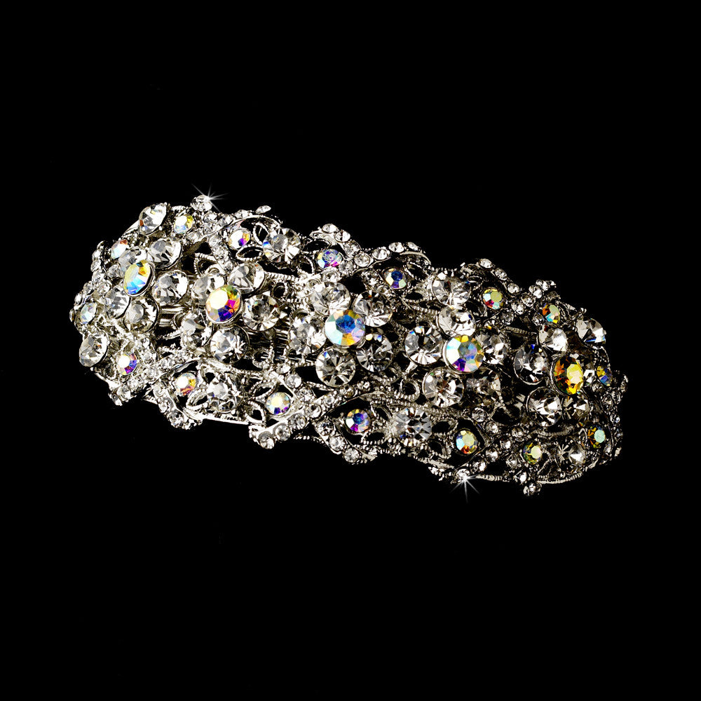 An ornate barrette fit for any hairstyle in need of extra sparkle. Accessorize your hair with this beautiful barrette featuring a setting encrusted with differently sized crystals and rhinestones. This barrette will add just the right touch of sparkle to any hair style.