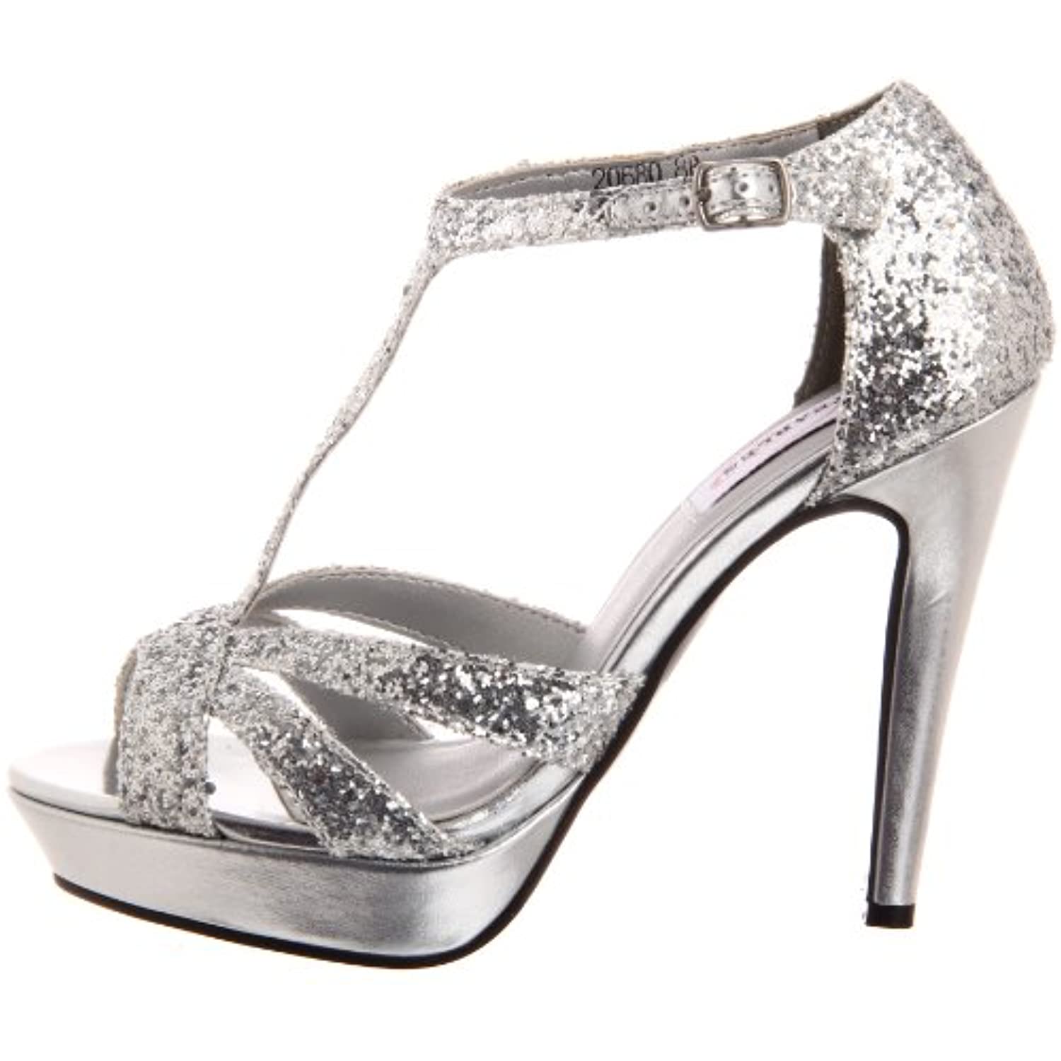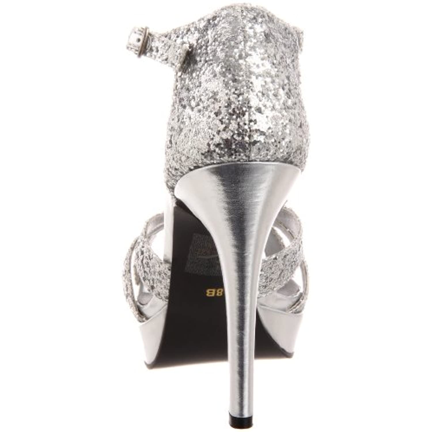 Made in multi-colored glitter material, this t-strap platform sandal will go with almost any outfit. An adjustable buckle secures the ankle-strap allowing for stability when wearing this 4 inch heel. Great to wear for any special occasion.