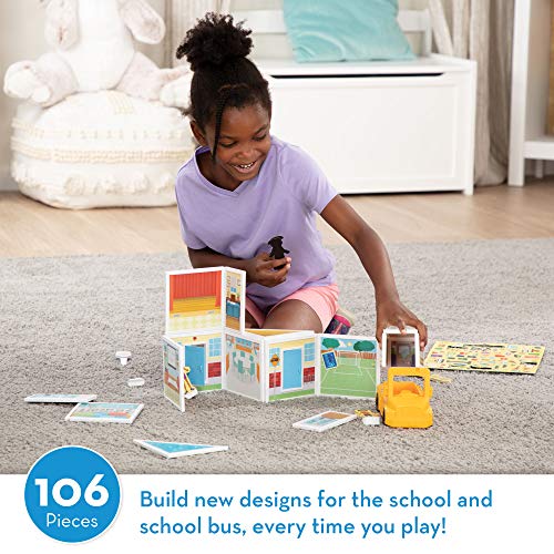 - 106-piece Magnetivity Magnetic Building Play Set with a school theme lets kids design, build, and play with their own school again and again