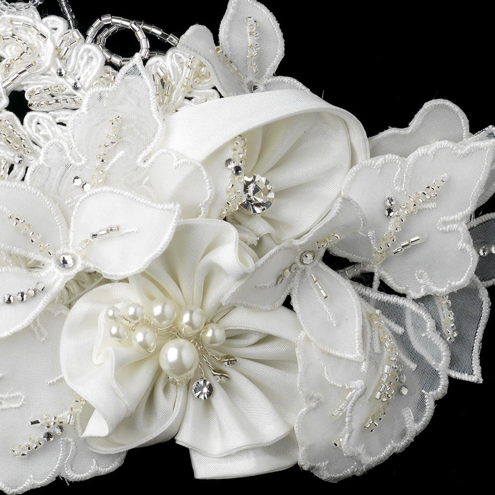 Accent the side of a partial or full up do hairstyle with this Russian Tulle Décor Hair Cap. Exquisite detailing of beads, fabric flowers, pearls and sparkling rhinestones are the perfect blend of elements to complete the finishing touches to this unique hair accessory. Transform your entire wedding day look by featuring this breathtaking bridal hair piece that easily secures itself into the hair with an alligator style clip for maximum security and comfort throughout the duration of its wear.