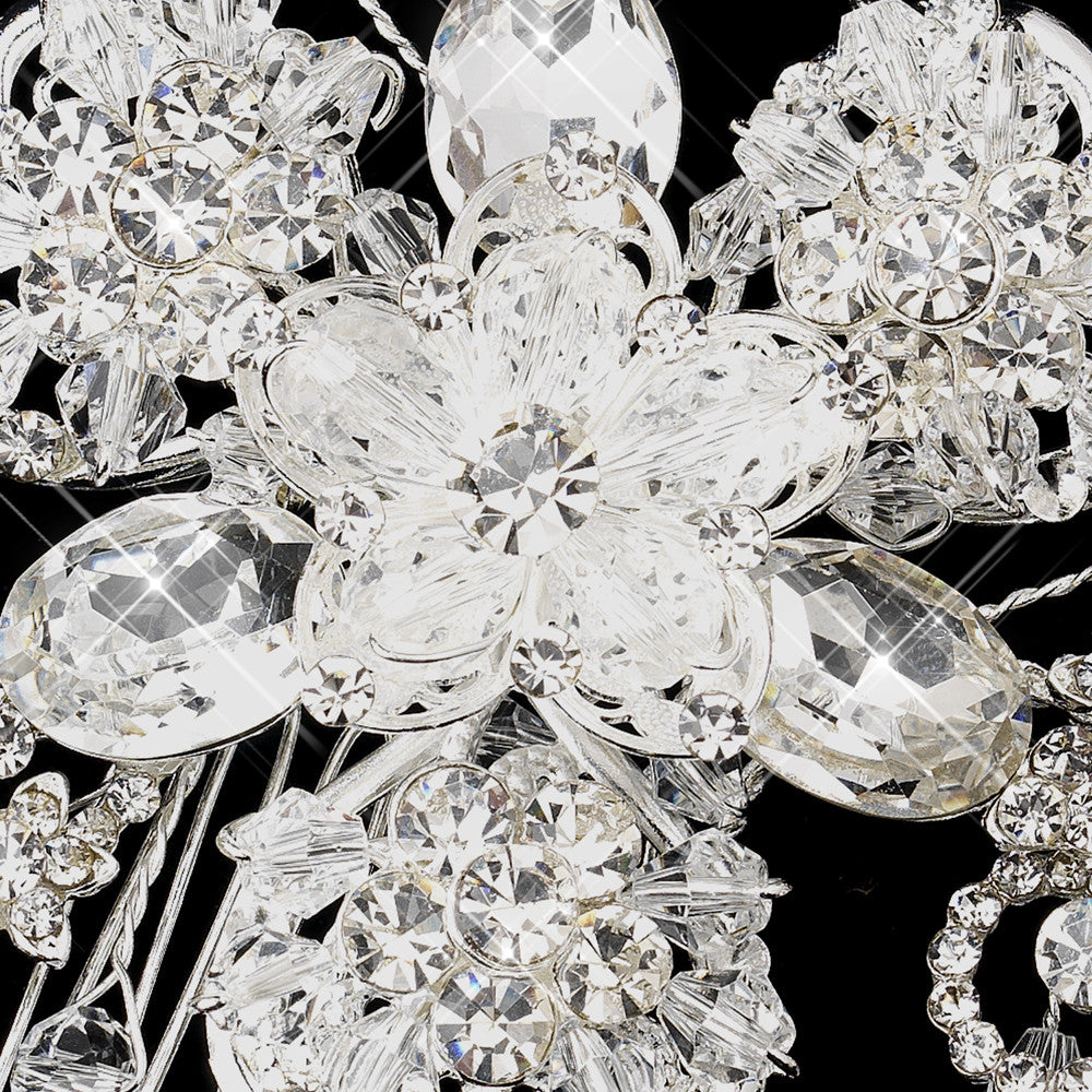 Breath taking and exquisite! This wonderful silver floral side accent comb is the ideal accessory to complete your bridal look. Featuring shimmering Swarovski crystal in a floral embellishment and deco of sparkling rhinestones, this beautiful headpiece will guarantee to complement any wedding grown.