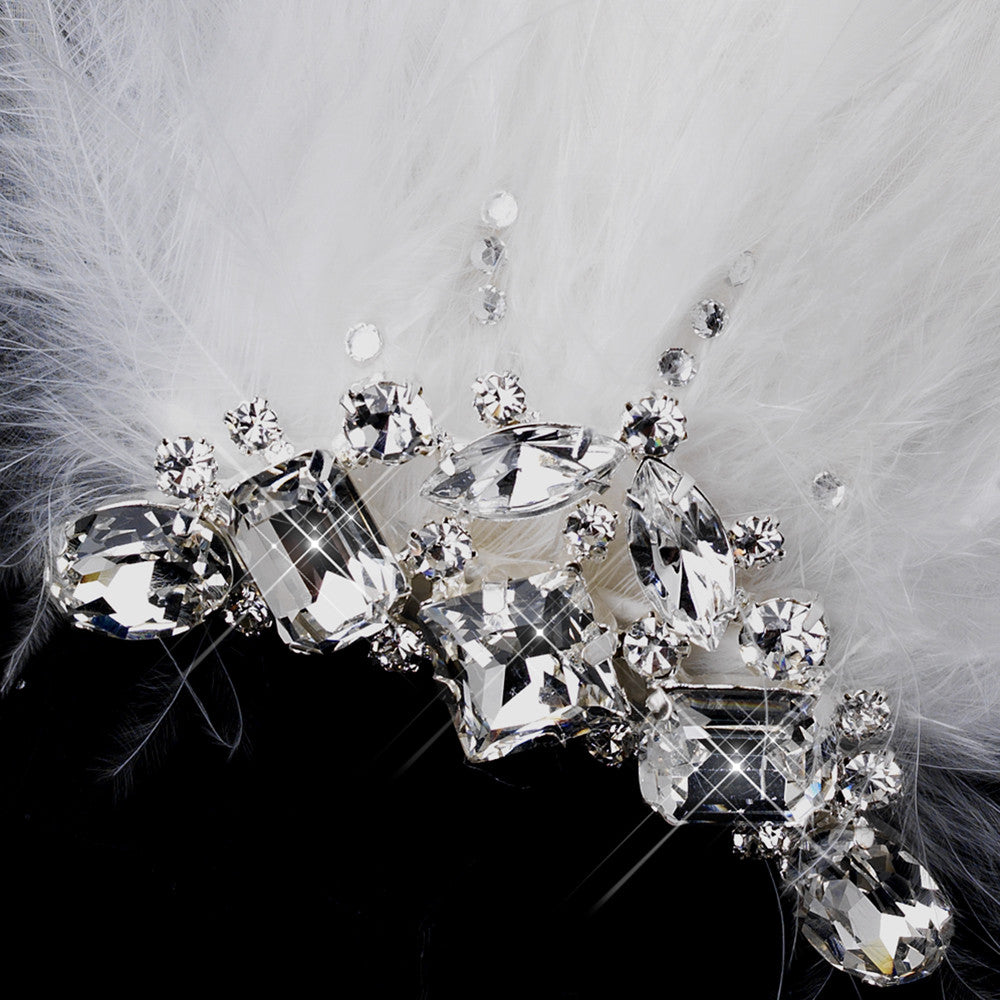 Feather fascinator clip with crystal ornamentation. Soft ivory or white feathers with sparkling crystals as an accent to this beautiful hair accessory.