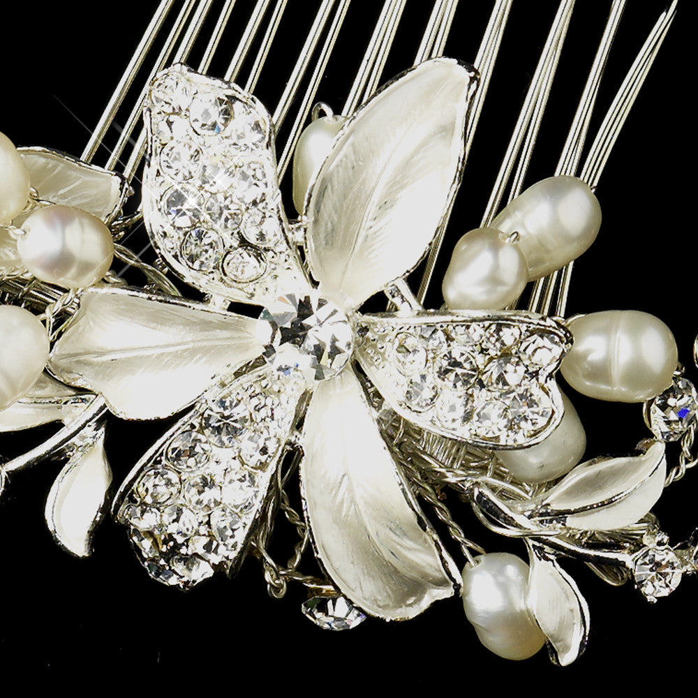 Silver Rhinestone & Freshwater Pearl Flower Bridal Hair Comb 702