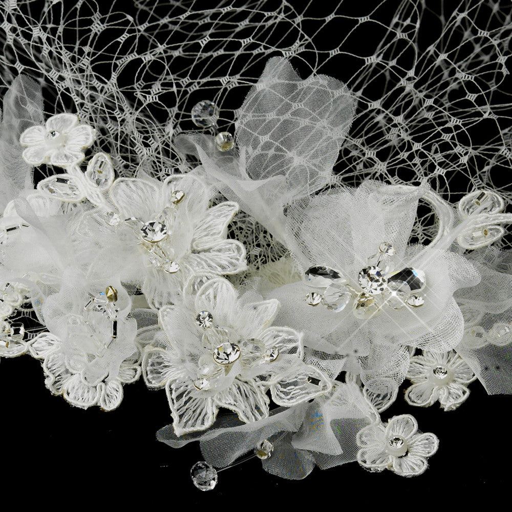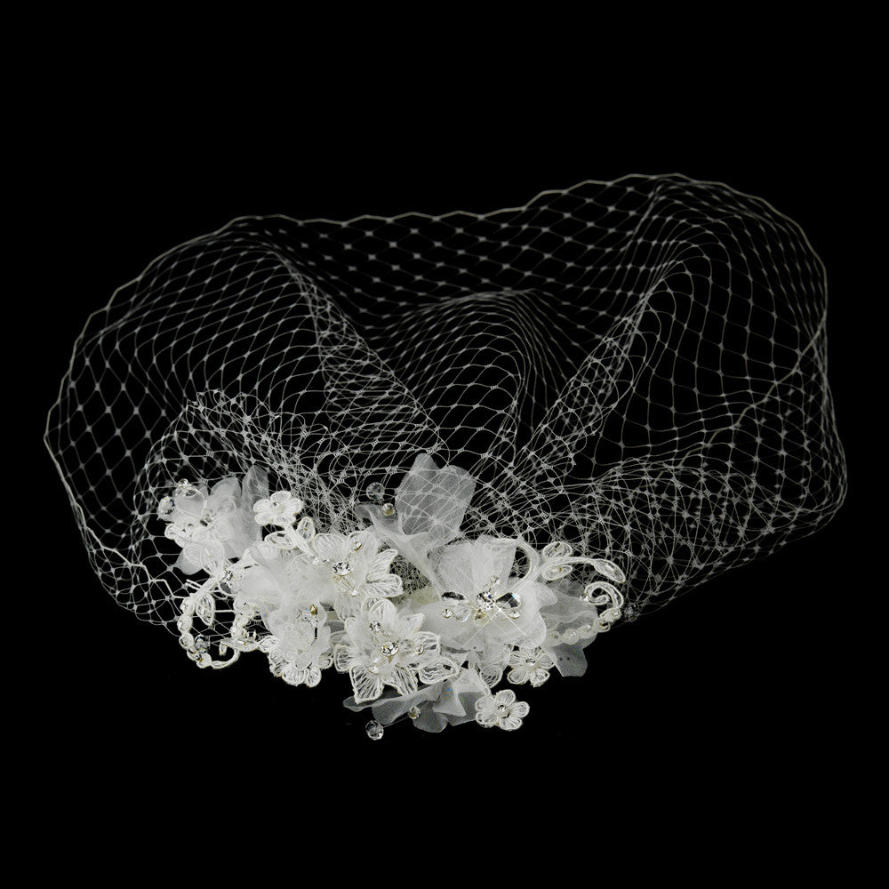 Floral Veil Fascinator with Rhinestone, Crystal & Lace Clip 2719